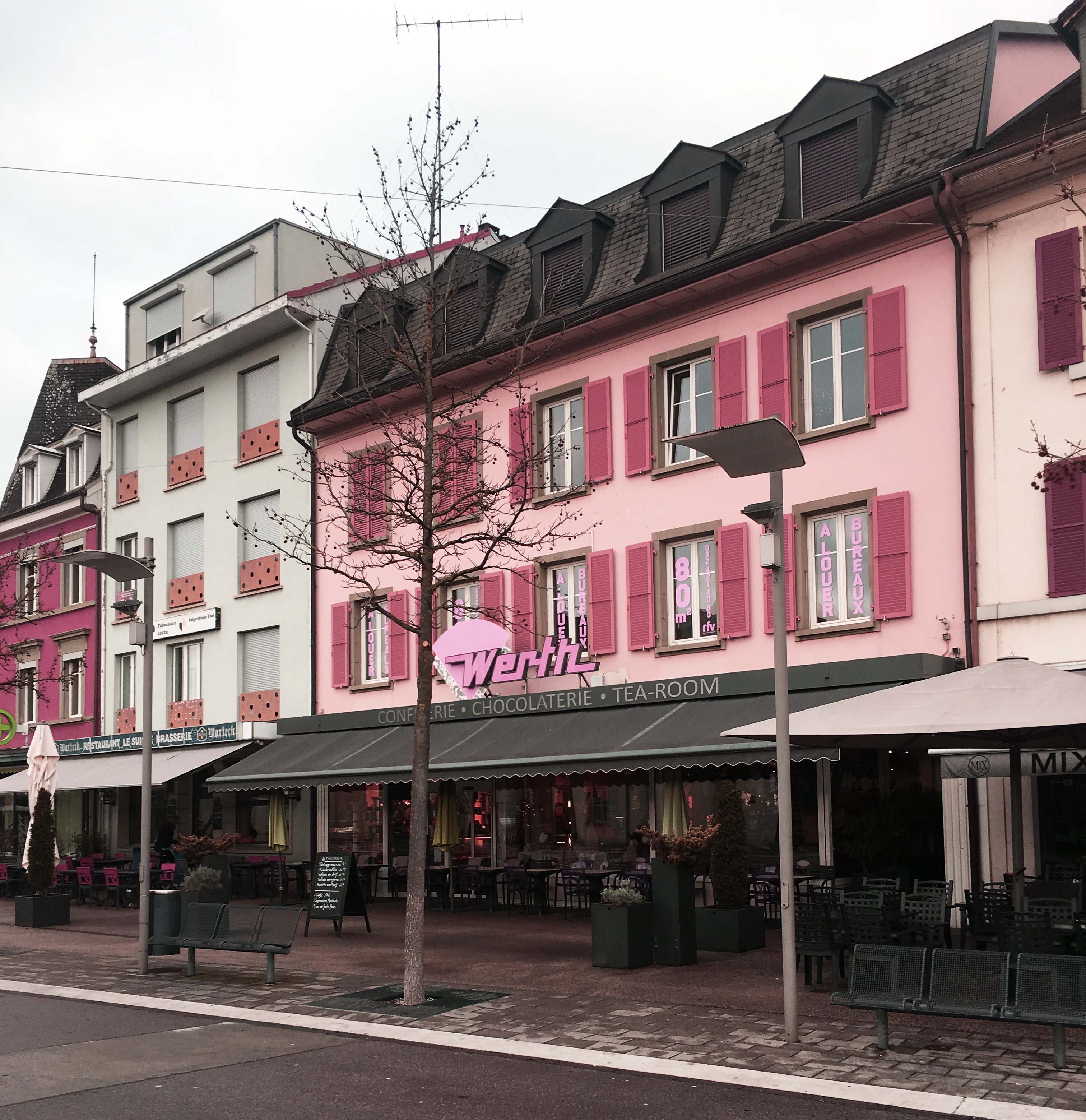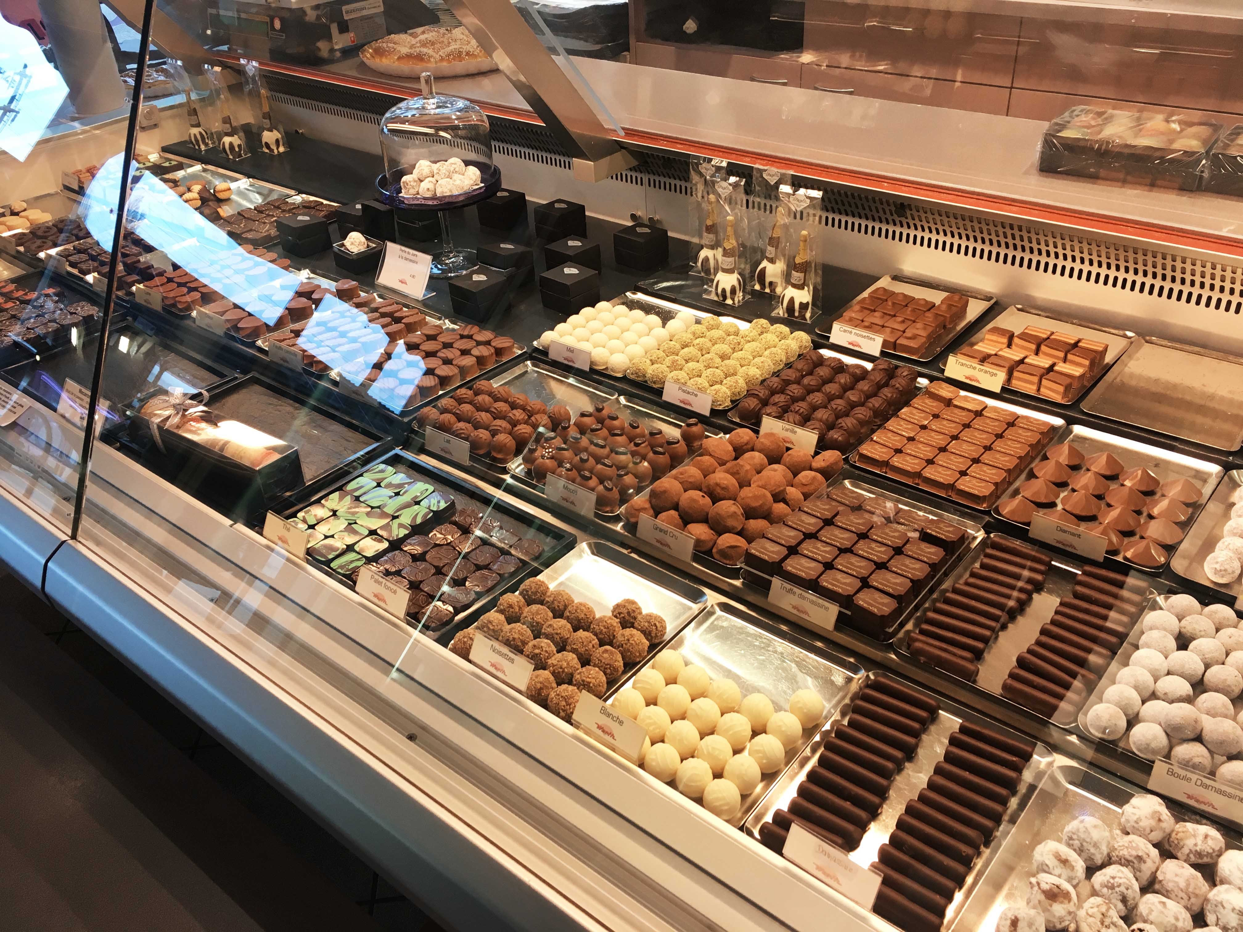 A Delémont tutte le mattine abbiamo fatto colazione al bancone del Werth Confiserie, un delizioso bar/cioccolateria dai colori pastello, tutto in rosa e verdino, che a me ricordava un po’ le atmosfere dei film di Wes Anderson. Ovviamente non aspettatevi né il nostro espresso né il nostro cappuccino, ma vi posso assicurare che i prodotti da forno sono pazzeschi, con delle ottime marmellate. Qui ci siamo sentiti davvero coccolati, ogni giorno ci offrivano un cioccolatino a scelta in un vassoi pieno di queste prelibatezze.