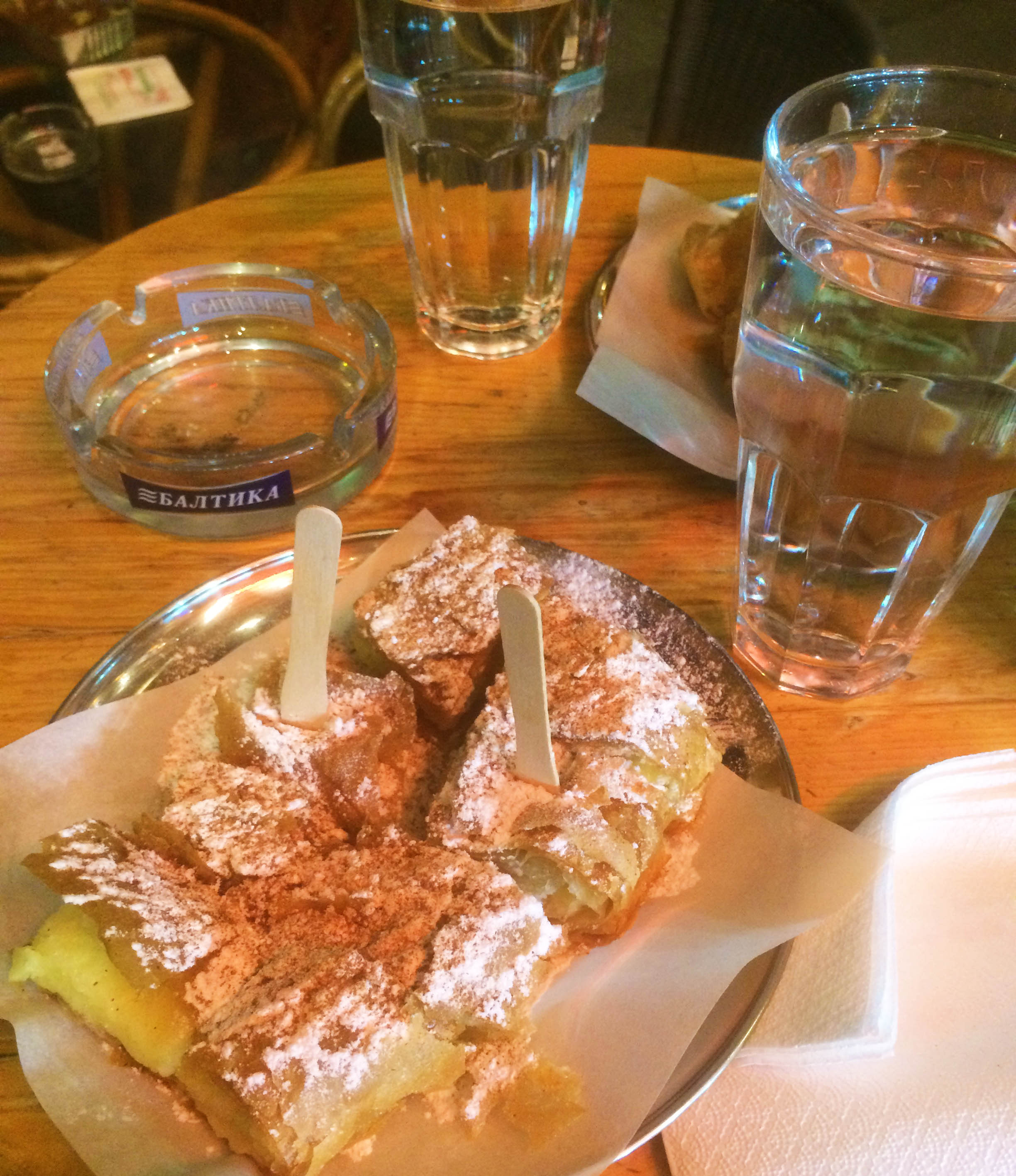 Ultima tappa, dolce e imperdibile, da Bougatsadiko Thessaloniki a Psirri, un forno dove si può gustare la bougatsa originale e veder stendere la pasta fillo.