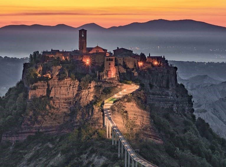 Anche l’alba qui è spettacolare: “la Città che muore” nelle prime ore del mattino sembra avvolta, anzi sospesa nella nebbia, in un silenzio ancestrale.