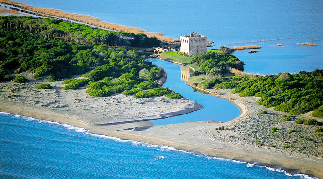 Da un lato possiamo osservare fenicotteri, oche selvatiche, gabbiani, aironi e usignoli; dall’altro una ricca macchia mediterranea con cespugli di ginepro, mirto, lentisco e quercia da sughero, in cui vivono daini, istrici, tassi, conigli selvatici, puzzole, faine, volpi, donnole, ricci, caprioli e cinghiali.