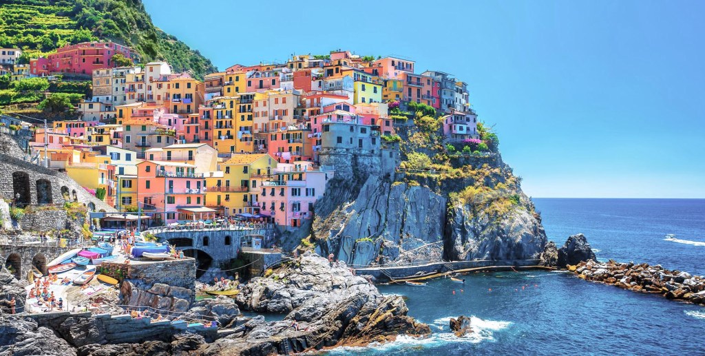 Il nome Manarola deriva probabilmente da “magna roea”, una grande ruota di mulino ancora presente in questo paesino variopinto. Le abitazioni, delle case a torre tipiche del paesaggio ligure, si affacciano sulla via principale ricavata dalla copertura del torrente Groppo.