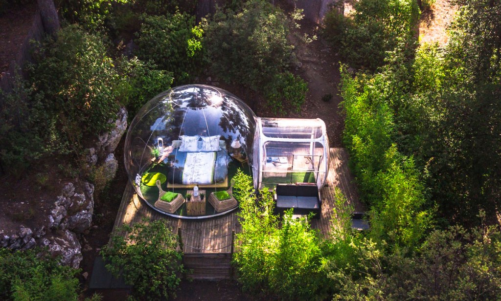 - Noi abbiamo scelto una bolla di Attrap’Rêves ad Allauch. Già provata la scorsa estate in Basilicata, stavolta optiamo per quella completamente trasparente, per un’immersione totale nella natura! A nostra disposizione un telescopio e una carta astronomica e allora occhi all’insù, anche dentro la bubble.