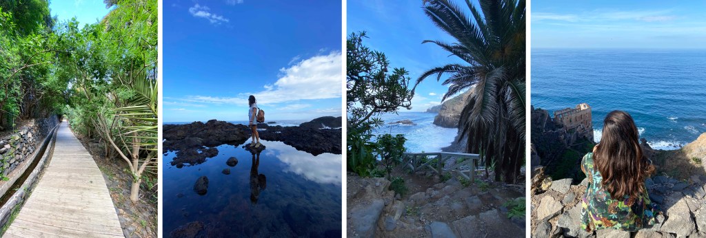 Senza un percorso preciso da seguire, abbiamo ammirato la Casona del XVI secolo dove risiedeva la famiglia proprietaria di queste terre; siamo scesi a punta El Guindaste su una spiaggia selvaggia con una serie di charcos in cui però eviterei di fare il bagno; ancora su al panoramico Fortín de San Fernando, una piccola fortezza difensiva contro gli attacchi dei pirati, con 3 dei 5 cannoni originali (qui è stata ambientata la prima versione di Moby Dick); abbiamo percorso un faticoso sentiero non ufficiale per Playa de Castro, che ci ha distolto dall’idea di raggiungere la spiaggia di Gordejuela; e infine, con un ultimo sforzo tutto in salita, ci siamo spinti fino ai ruderi della prima macchina a vapore di Tenerife, un edificio di 5 piani a 70 mt s.l.m., costruito agli inizi del ‘900 dalla società Hamilton & Co., dedita allo sfruttamento e alla canalizzazione dell’acqua. Purtroppo non è accessibile, ma vale davvero la pena arriva fin qui per osservarlo. Noi ci siamo fermati in questo punto ignari che, poco più avanti, avremmo trovato la Playa de Los Roques, caratterizzata da una roccia ad arco molto suggestiva. Beh questo sarà un buon pretesto per tornare!