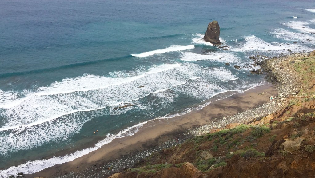 Arrivati a Roque de Las Bodegas di buon’ora e con una spiaggia piena di surfisti, ci siamo incamminati lungo il primo tratto del sentiero che attraversa il Parco rurale di Anaga, in un’alternanza di rocce rosse, strade sterrate, qualche casetta sparsa e belvederi da cui godere di una vista privilegiata su Playa de Benijo e Fabian. Dopo un paio di chilometri di cammino, siamo giunti a El Draguillo (credevo fosse solo una spiaggia, in realtà è un inaspettato agglomerato di case); da qui si può ancora procedere verso l’interno in direzione Chamorga o verso la punta più estrema a nord, verso Las Palmas de Anaga con il suo faro e Roque Bermejo. Per noi è il momento di tornare indietro, rimandando questi sentieri ad altre giornate, e goderci, ancora una volta, un pranzo al Restaurante Casa Africa.