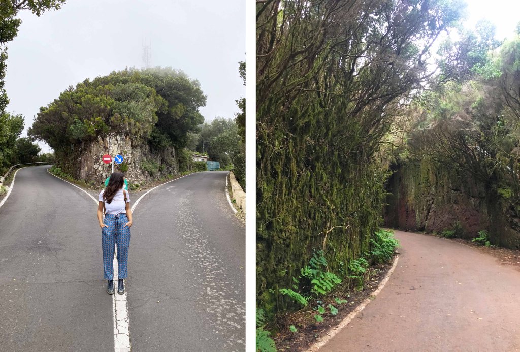 Ogni giornata deve però portare a qualcosa di nuovo e una destinazione fiabesca e nebbiosa, in un’isola dove è sempre primavera, sembrerebbe davvero un sogno per il giorno di Natale, ma la mia testardaggine spesso deve scontrarsi con le indicazioni insidiose di google maps! Il suggerimento è mantenere la calma e guardare tutti i percorsi possibili; così facendo siamo riusciti ad arrivati al Pico del Inglés, a quasi 1000 mt s.l.m. e con una vista a 360° sull’isola. Una strada a senso unico costeggia una roccia e porta al punto più panoramico, ma la vera sorpresa si trova qualche decina di metri prima (impossibile non notarla, è diventata meta di foto-pellegrinaggi): una fessura nella montagna, due alte e ripide pareti ricoperte di muschio e sulla sommità alberi protesi gli uni verso gli altri, quasi a creare un tetto a questo passaggio magico!