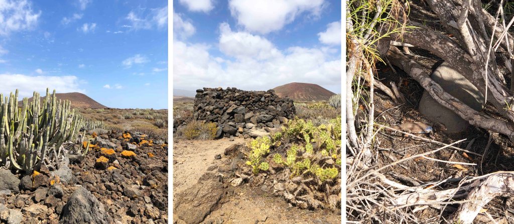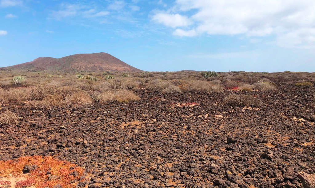 Ti troverai in un luogo surreale, una distesa pianeggiante di polvere rossastra e detriti lavici e, in lontananza, una serie di coni dominati al centro dalla Montaña Grande (152 mt). Potrai osservare diverse cactacee, gli splendidi cactus Cardon, tipici delle Canarie, e la tabaiba in cui, se sarai fortunato, potrai scorgere delle enormi lucertole nere e azzurre.