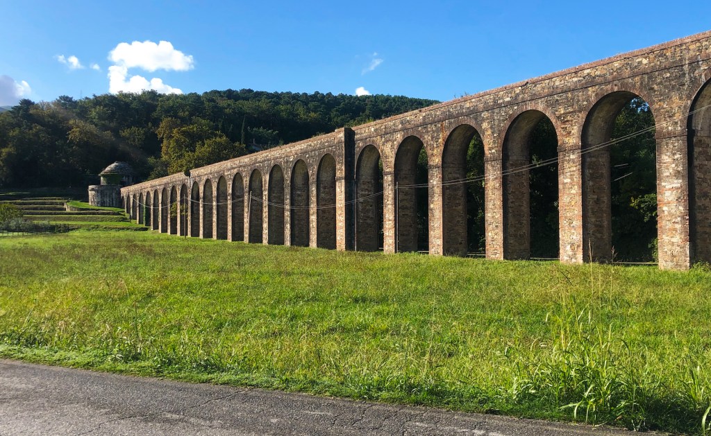 Una costruzione imponente formata da 459 archi in pietra e mattoni, ognuno alto 12 metri. Lungo 3,2 km, presenta all’inizio e alla fine due cisterne, i cosiddetti tempietti: “Tempietto di Monte” e “Tempietto di Valle”, anche chiamato “Tempietto di San Concordio”. Il dislivello tra le due cisterne è di 30 metri, una pendenza impercettibile di circa 1 cm ogni metro. La canalizzazione delle acque avveniva sopra gli archi ed era filtrata mediante il passaggio fra sassi e sbavature che permetteva il deposito delle impurità.