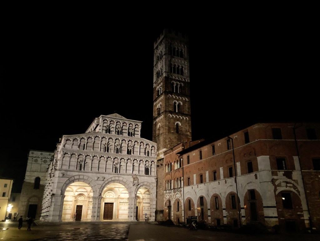 Il Duomo di San Martino, con la facciata romanica asimmetrica e il bassorilievo del labirinto sul pilastro a ridosso dell’altissimo campanile, era una tappa fondamentale della Via Francigena. Custodisce il Volto Santo e il monumento funebre di Ilaria del Carretto, opera rinascimentale di Jacopo della Quercia.