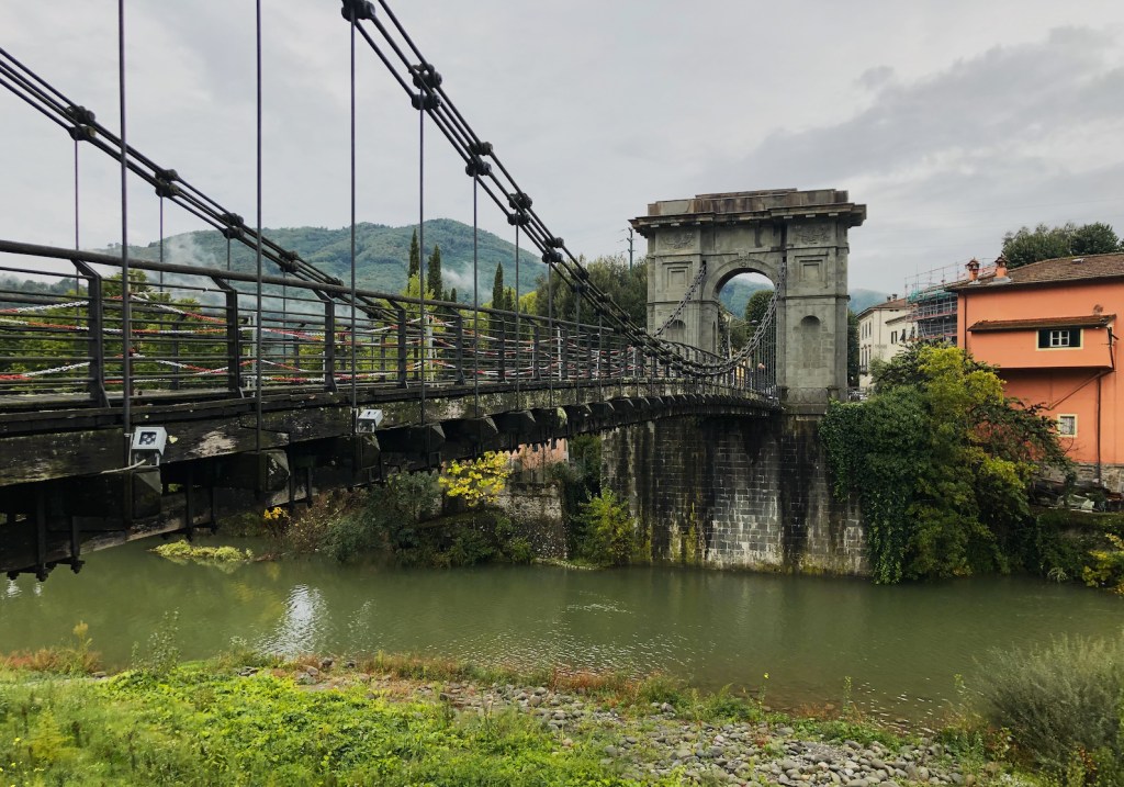 È la porta d’ingresso per Bagni di Lucca, collegamento tra la frazione di Fornoli e Chifenti. Voluto dal duca di Lucca, Carlo Ludovico di Borbone, dopo che una piena della Lima aveva distrutto un ponte più antico nel 1836, è di chiara ispirazione inglese. Si tratta infatti del primo ponte realizzato in Italia in ferro e legno su progetto dell’architetto Lorenzo Nottolini. Concepito come luogo d’incontro e di vita sociale del paese, fu danneggiato durante il secondo conflitto mondiale e poi ricostruito come da disegno originario. Il ponte presenta alle estremità due archi di trionfo con delle nicchie rimaste vuote.