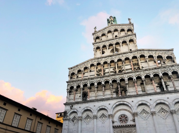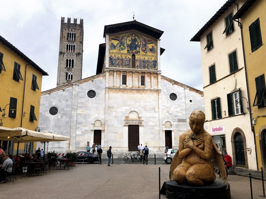 La Chiesa di San Michele in Foro (la mia preferita, visibile anche dall’interno di Casa Puccini) ha una splendida facciata dominata dalla statua in marmo dell’arcangelo Michele. Secondo una leggenda lucchese, l’anello al dito dell’angelo ha un diamante di dimensioni enormi e sembra che lo si possa veder brillare – di sera – da un preciso punto della piazza.