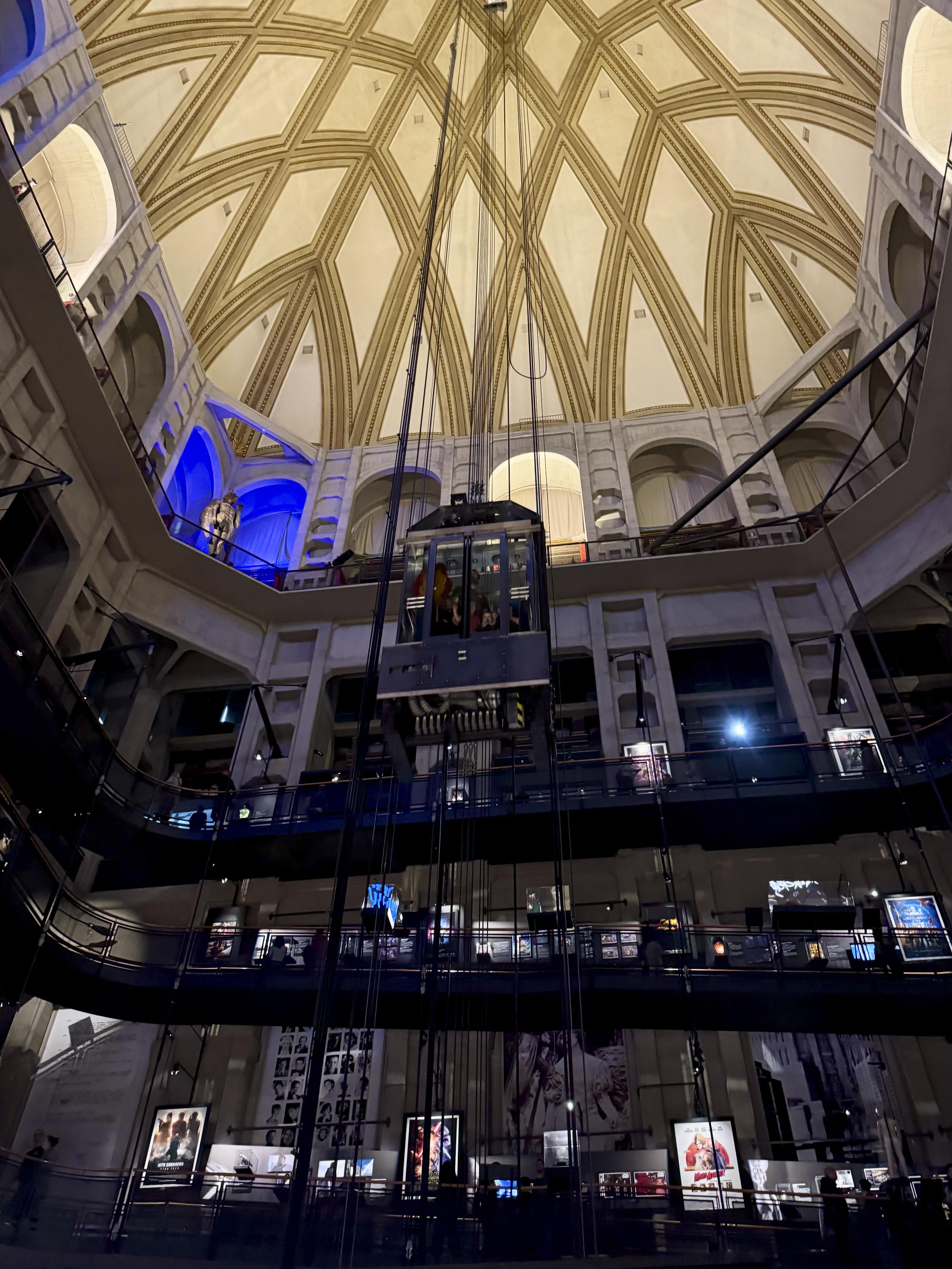All’interno, il primo passo è stato salire sul celebre ascensore panoramico per raggiungere il Tempietto a 85 metri di altezza e godere della vista a 360° su Torino e sull’arco alpino che la circonda. Non avrei mai immaginato che la salita stessa potesse essere un’esperienza emozionante: l’ascensore, situato al centro dell’Aula del Tempio, cuore pulsante del Museo, viene risucchiato fino a sparire nella cupola, attraversando – piano dopo piano – un vortice verticale fatto di scenografie, proiezioni e giochi di luce.
