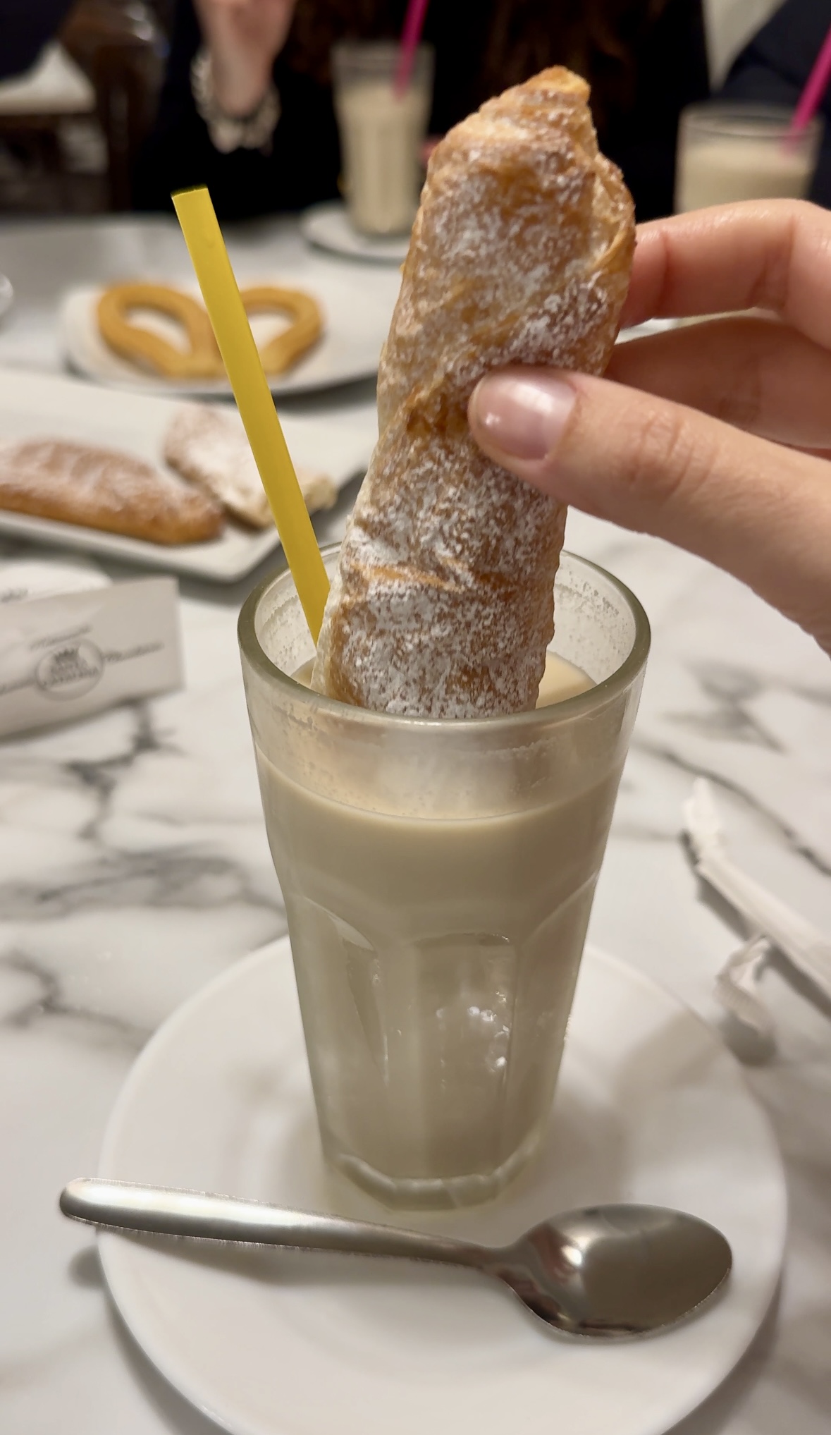 Abbiamo speso 36€ per 6 horchata, 1 cioccolata calda, una porzione di churros e 5 fartons.
