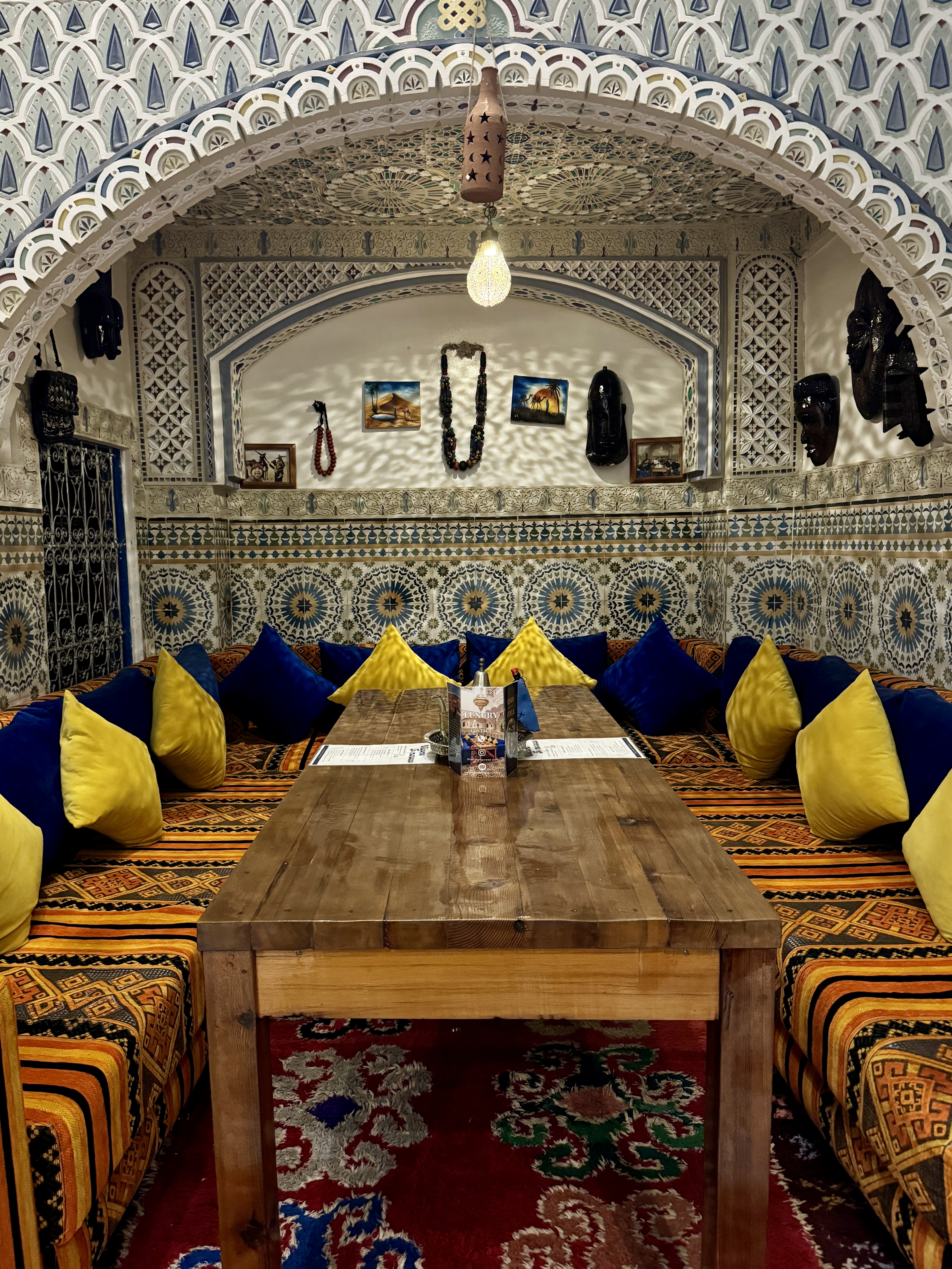 Senza dubbio il riad più bello in cui abbia dormito durante questo tour in Marocco! Purtroppo ho avuto poco tempo per godermelo: siamo arrivati in serata da Rabat e la mattina seguente il nostro driver ci attendeva già per partire verso il deserto. Poche camere, colori delicati, atmosfera rilassata… e una terrazza da sogno dove abbiamo fatto una colazione deliziosa (anche se anticipata!).