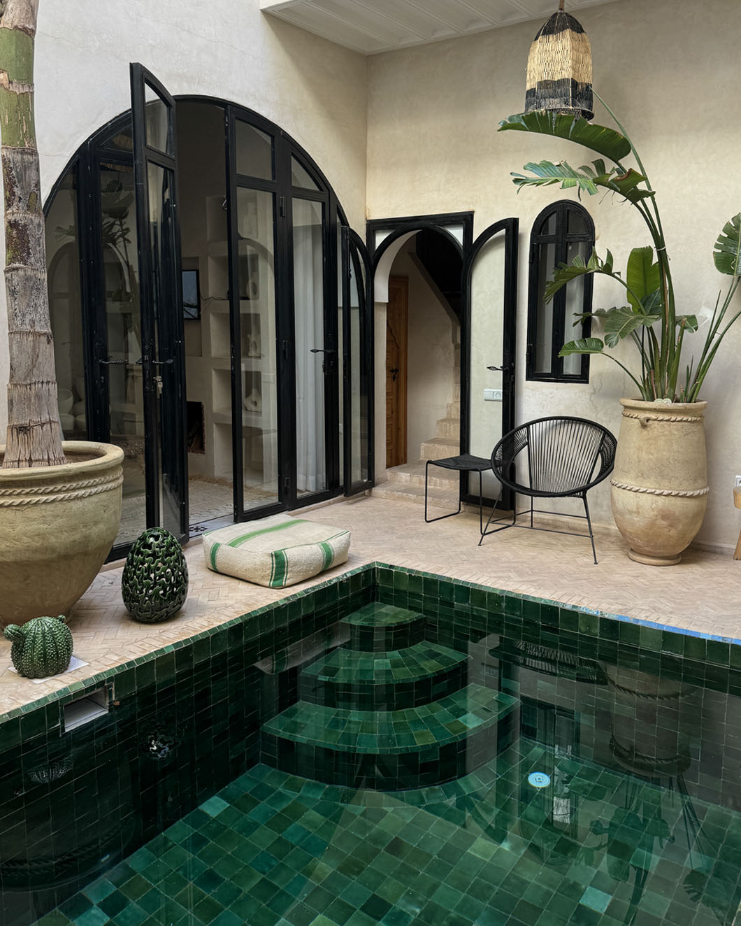 In posizione strategica, a pochi minuti a piedi da Jemaa el-Fnaa, uno splendido e accogliente riad con 11 camere e piscina. Potrai cenare in terrazza ammirando il tramonto sulla città proprio come abbiamo fatto noi (hanno anche un menù vegetariano)!